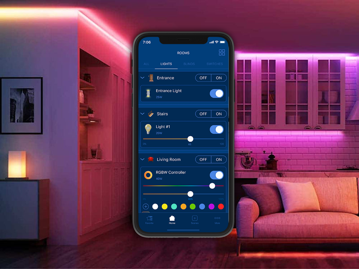 Централізоване керування світлом, RGBW-підсвітка, підготовка до повного проєкту розумного будинку.