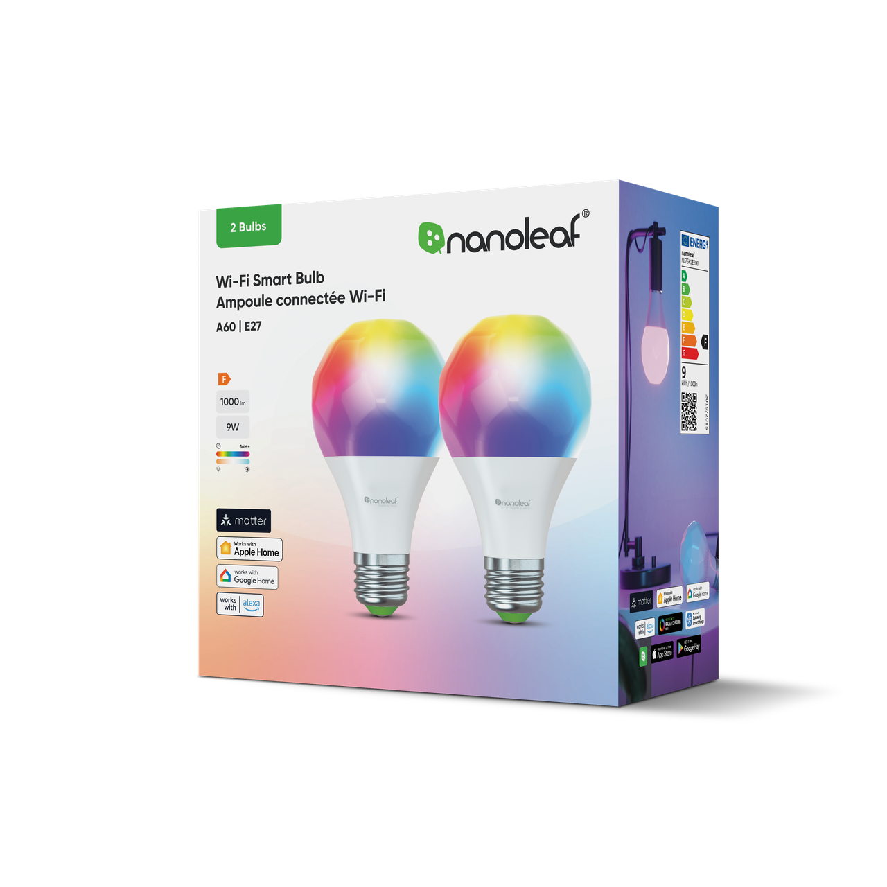 Умная лампа Nanoleaf Essentials Smart Bulb, A60, E27, 9W, Wi-Fi, Apple Homekit, Matter - 2 шт.