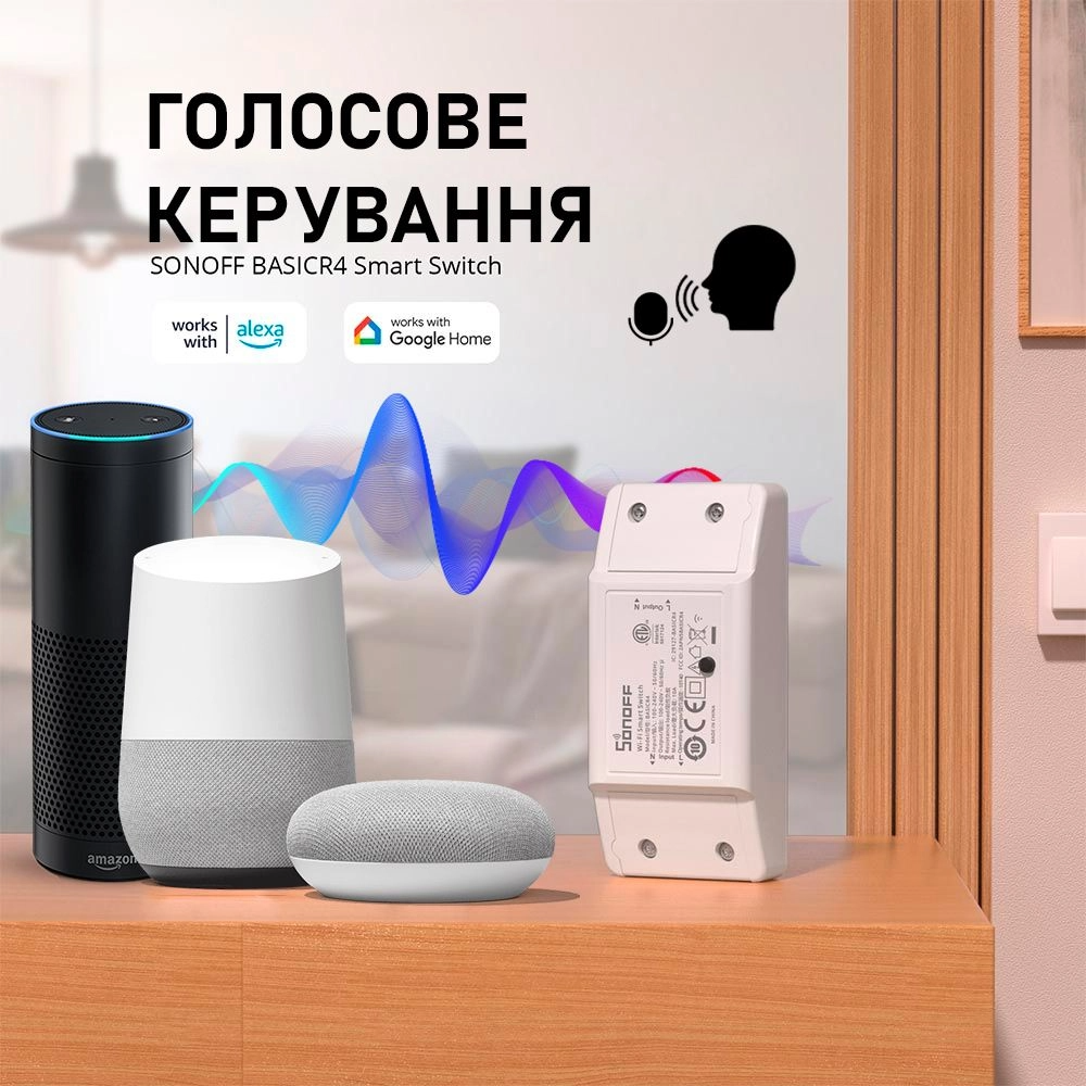 Освободите руки и упростите повседневные задачи. Реле BASICR4 поддерживает голосовое управление через Alexa и Google Home — включайте свет и технику, просто сказав команду. Умный дом слушает вас.